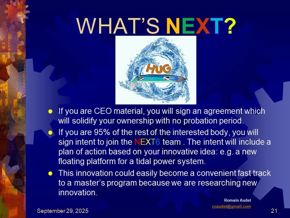 There are as many Next6 Teams as there are world economic areas and there are 12 other applications of laminar flowing spiral pipelines.