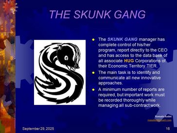 THE SKUNK GANG HAS THE FREEDOM TO EXPAND THE POTENTIAL OF THE HIGH VELOCITY OF THE LAMINAR FLOW OF A SPIRALING PIPELINE.