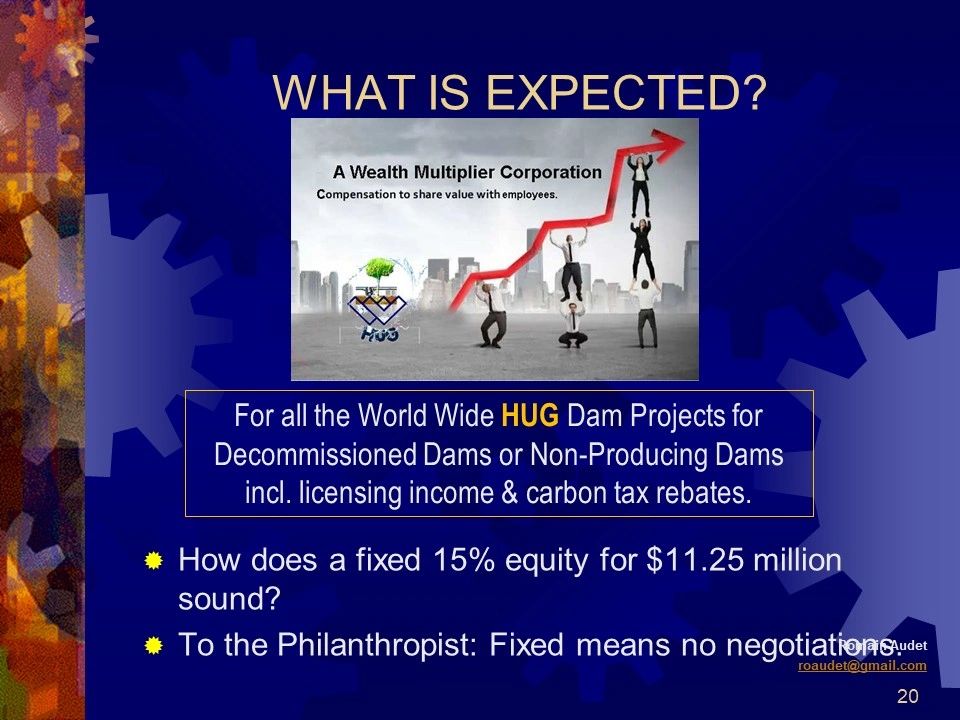 1,500 kW Francis Turbines: $15,000 x 10 turbines = $150,000 + electrical & HUG Pipes = $320,000 all in.